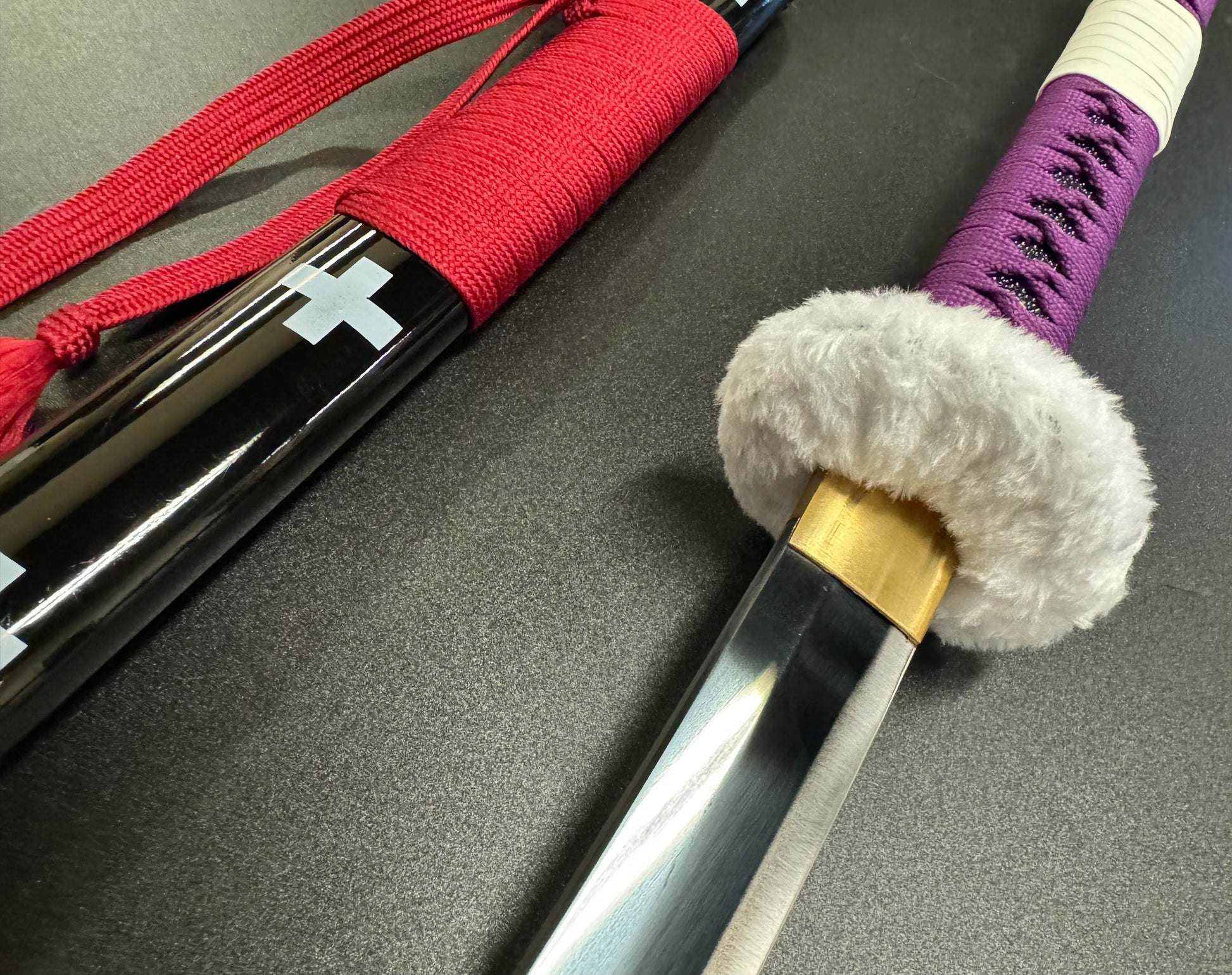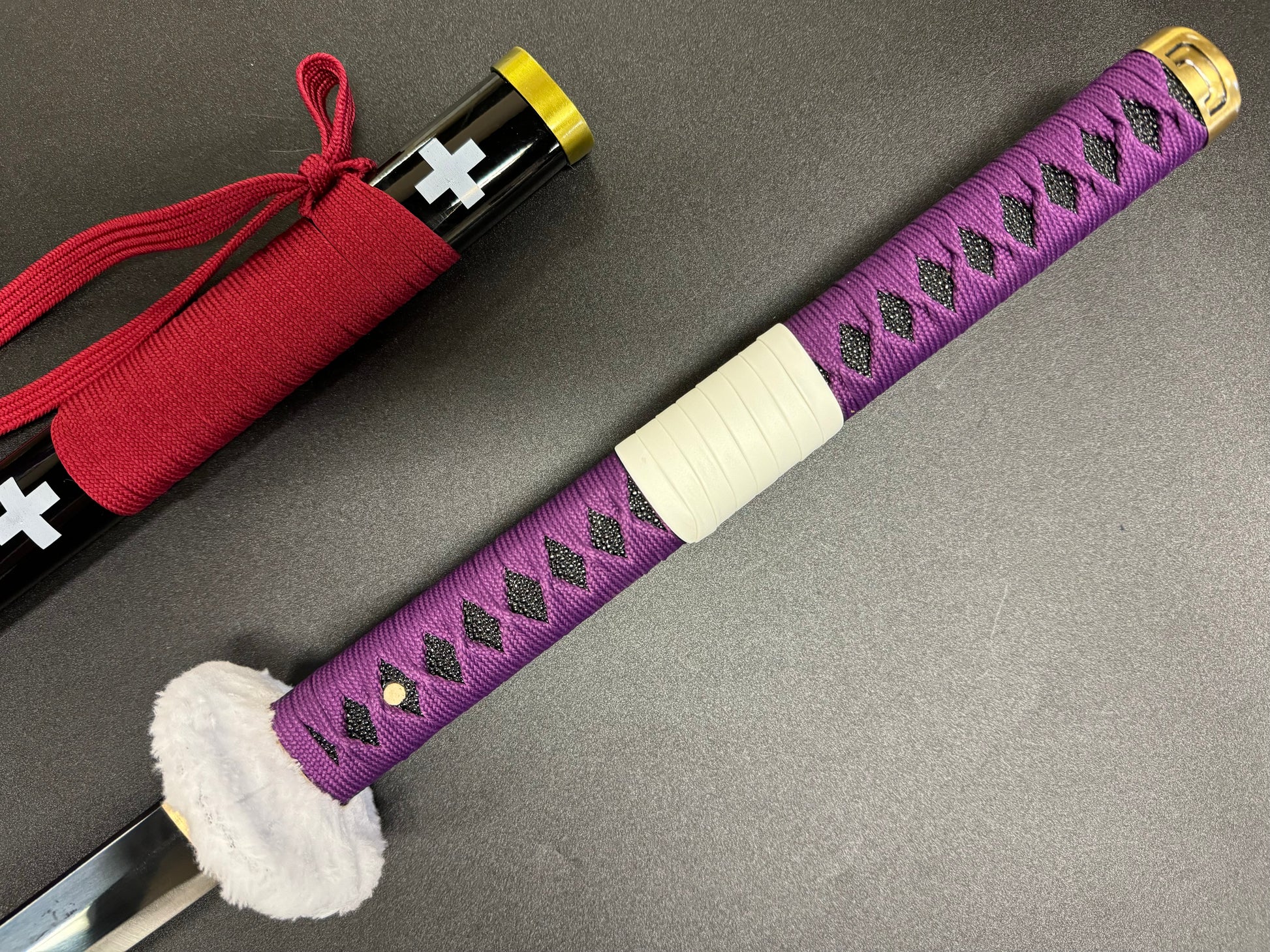 The Kikoku (trans. "Demon Wail") is a cursed sword that Law uses as an "injection needle," to cut or pierce from a distance, and with his full power, can cut an entire mountain. The Kikoku is a long katana referred to as an Odachi or Nodachi, has a white fur guard along with a black sheath that has white crosses and a piece of red rope tied to the sheath.