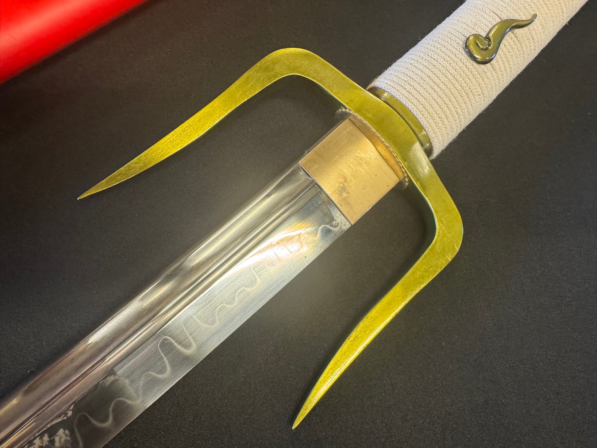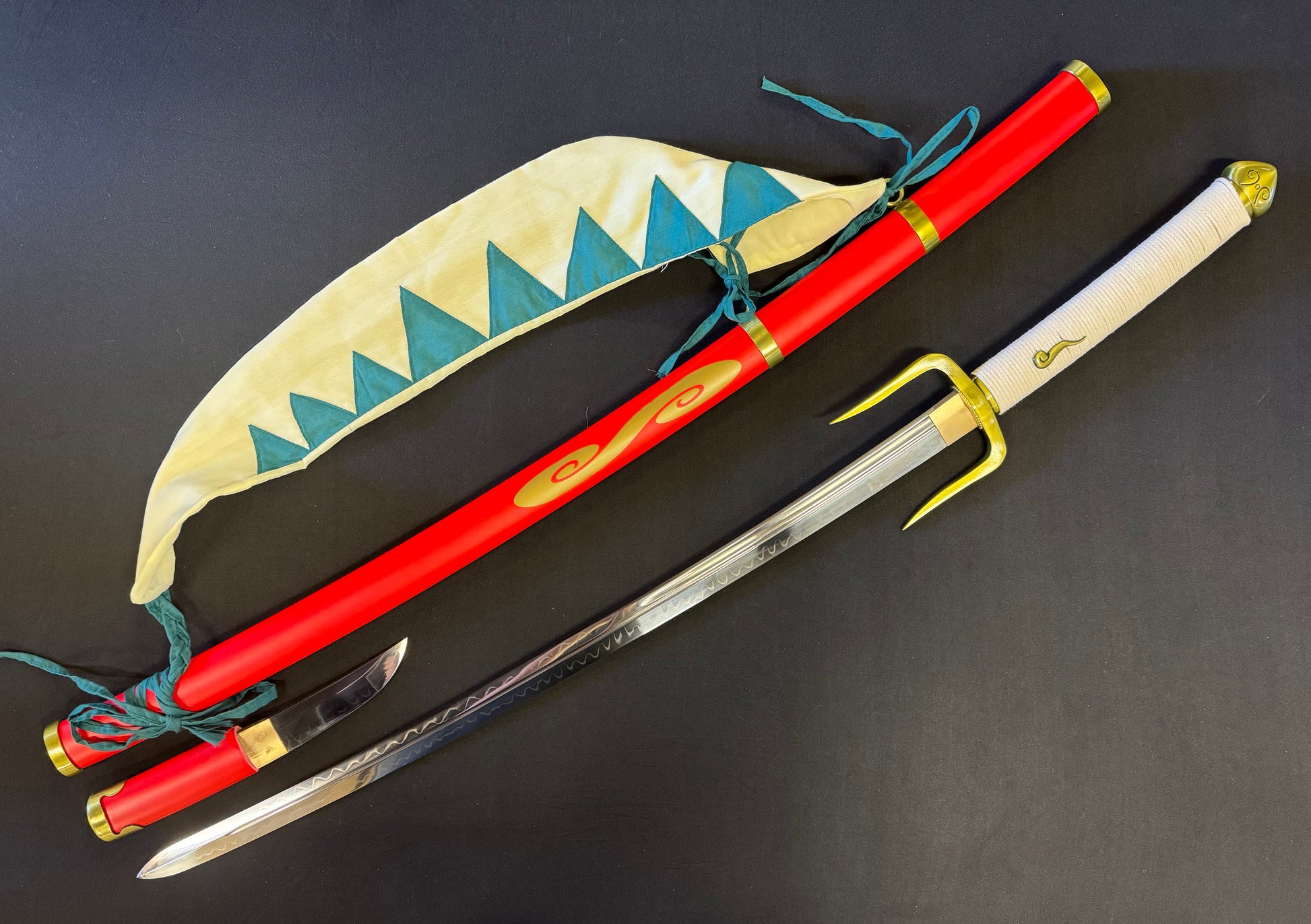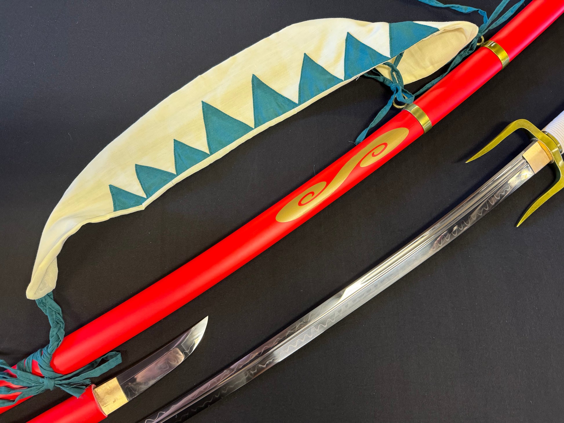 One of the most striking features of the Mugen Typhoon Swell Sword is its unique blade shape. The blade is wider at the base than a traditional katana, which gives it a distinctive look and makes it an excellent cutting weapon. This Samurai Champloo Mugen sword is sharp, well-balanced, and ready to use straight out of the box.