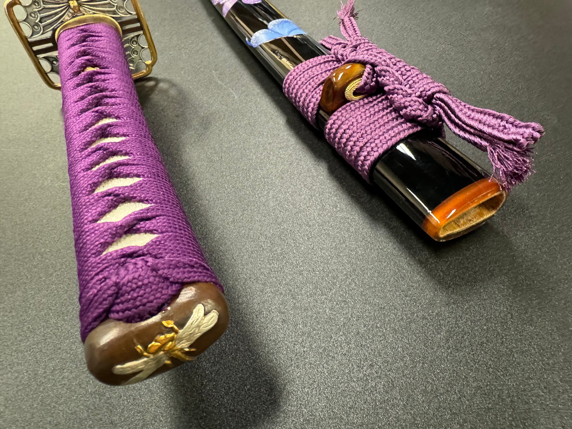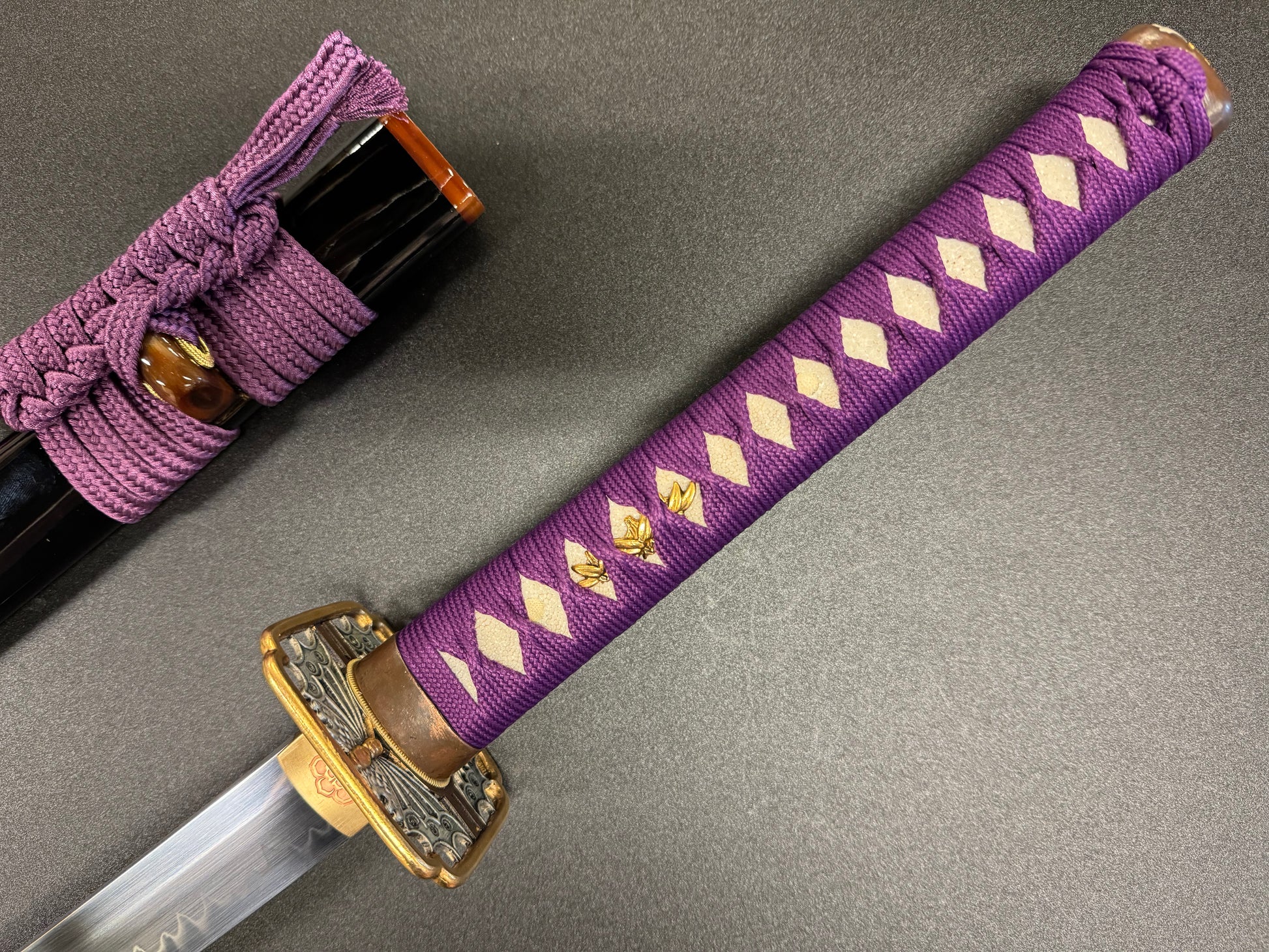 Handle material: Hardwood with genuine white rayskin,purple synthetic silk Ito
