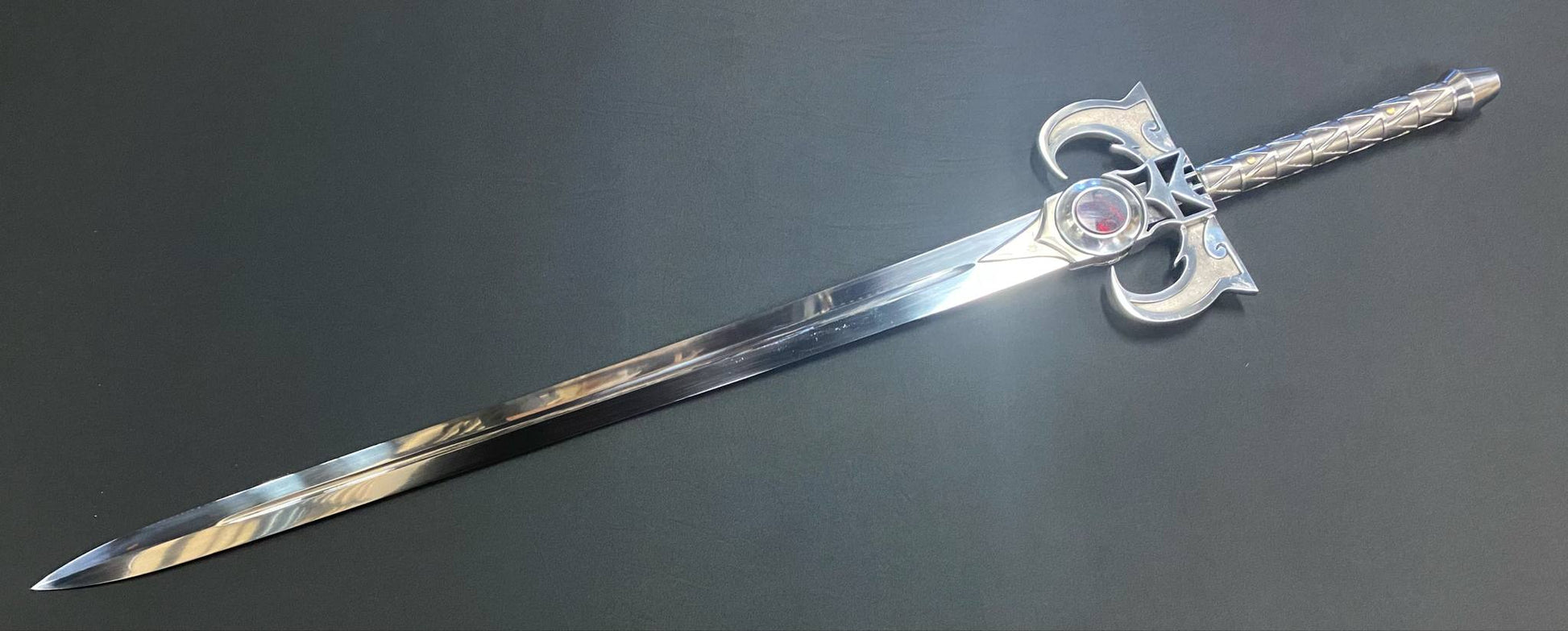 This is the replica of the Sword of Omens, the sword wielded by the protagonist Lion-O in the 1980's animated TV series Thundercats. In the series, the sword is embedded with a red jewel called the "Eye of Thundera" which gives it imposing power.