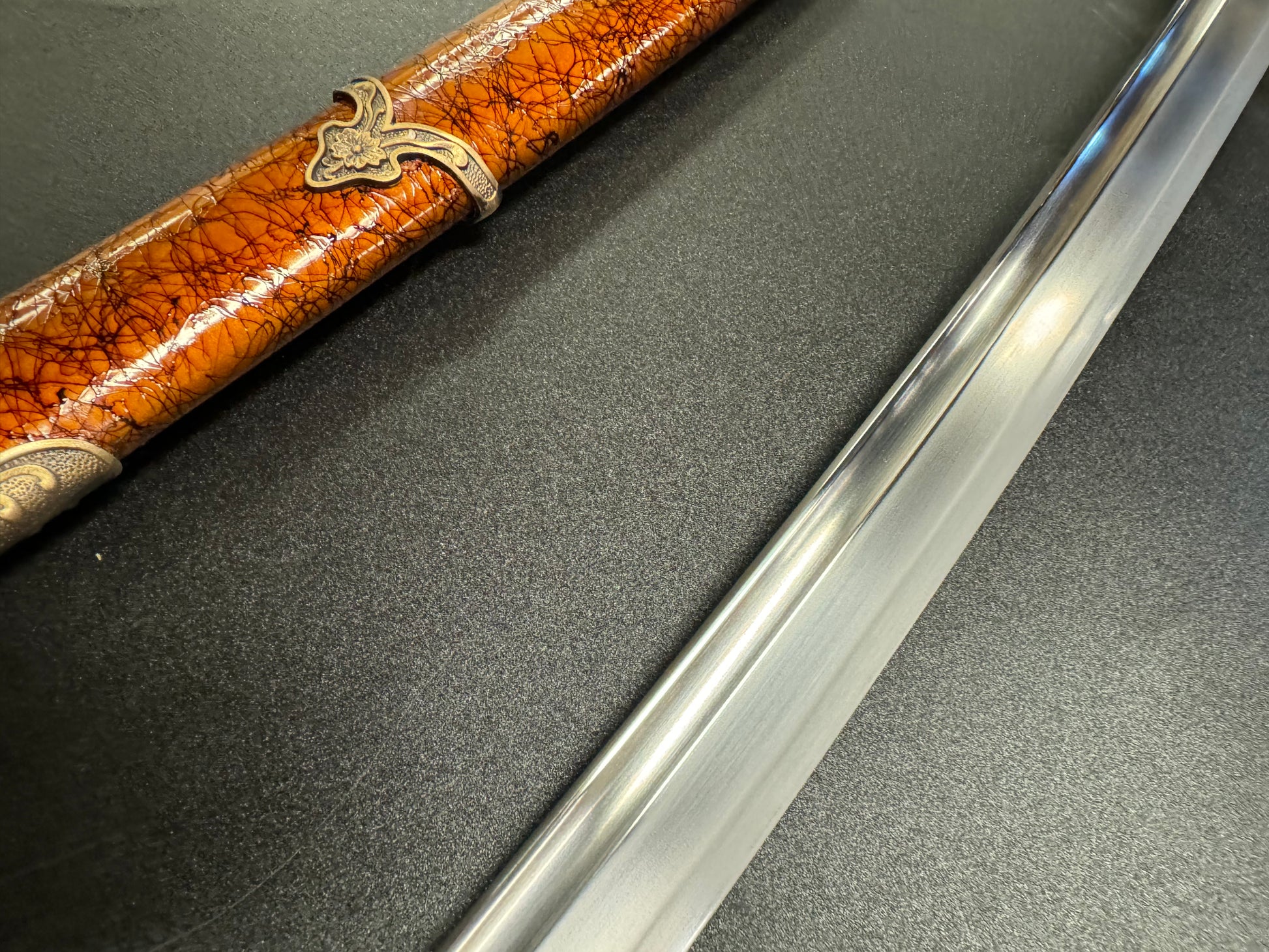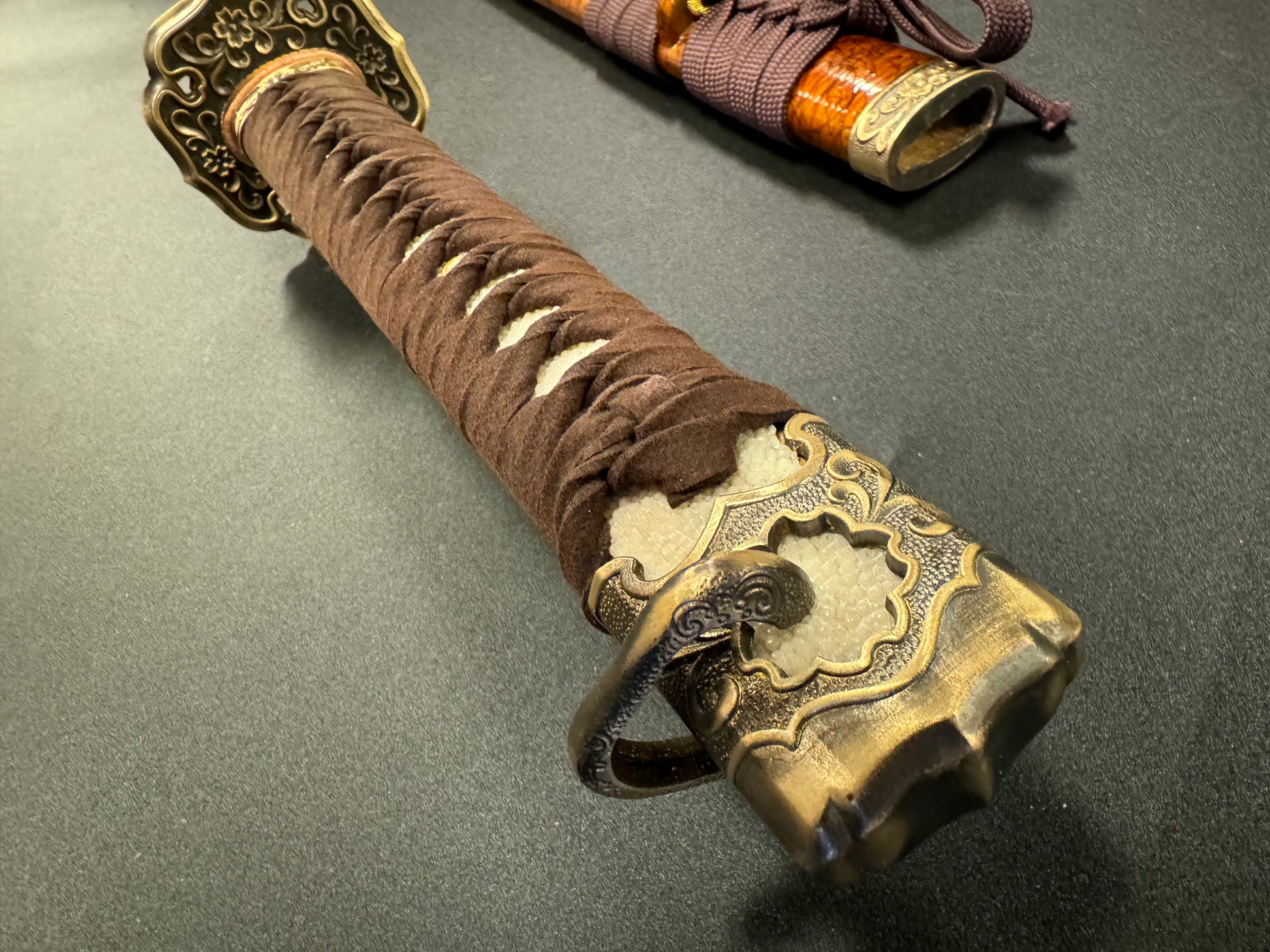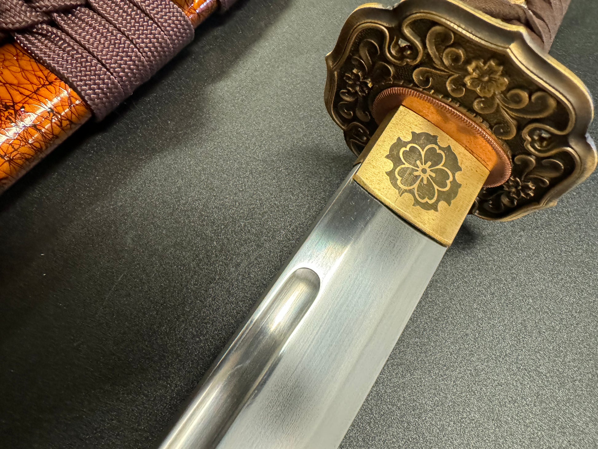 Forged 27.5" folded carbon steel blade, full tang with natural Suguha Hamon and Bo-hi